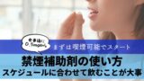 - 飲み忘れに注意:忘れたからといって、次に2回分をまとめて飲むようなことは避けましょう。
