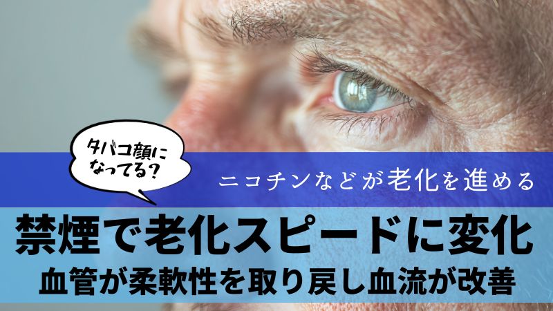 喫煙によってダメージを受けていた血管や細胞が、本来の働きを取り戻そうと動き出すことで、時間の経過とともに老化のスピードにも変化が現れると考えられています。